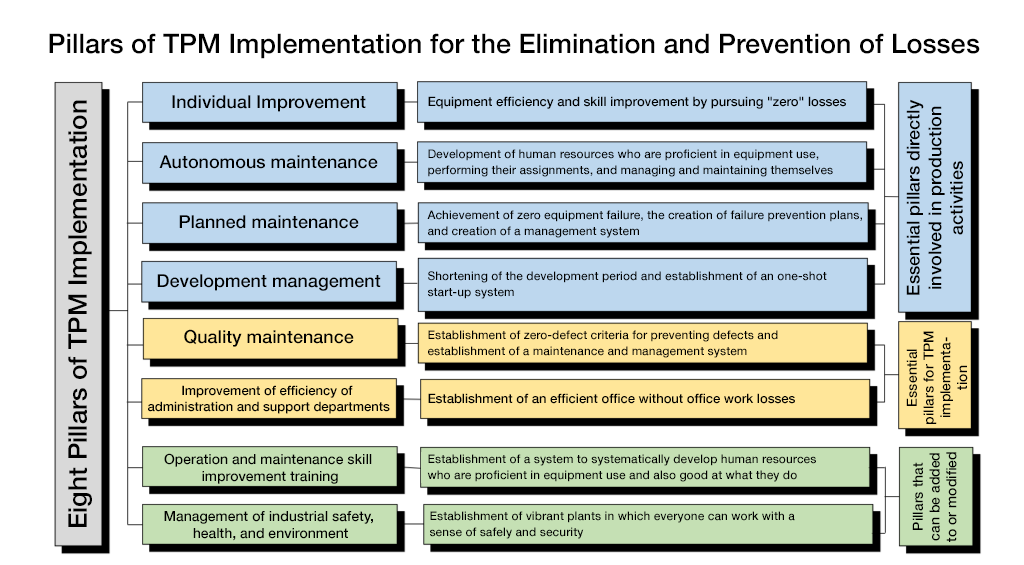 ※The pillars are called differently depending on the company, but here is the standard of TPM pillars.
