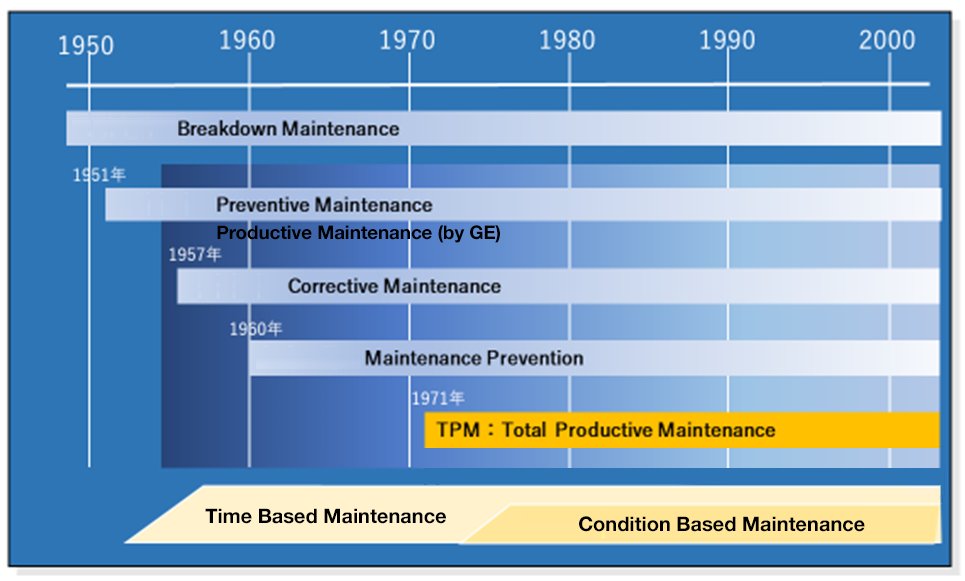 TPM is applied in many companies from the world. After this expanding, Japanese Industrial Standards(JIS Z8141:2001)has defined TPM. And now IATF16949:2016(※1)that is an innternational standard, is requiring to build TPM as a system.